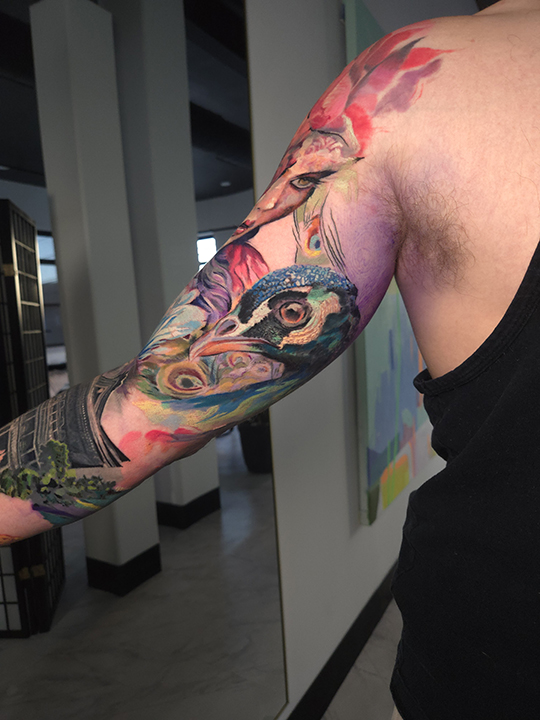 Pete Zebley is a talented tattoo artist and classically trained visual artist based in Philadelphia, PA. He began tattooing in 1998 and has since become known for his exceptional watercolor and fine art tattoos. Pete’s artistic approach combines classical techniques with modern tattoo innovation, making his work unique and highly sought after. While developing his tattooing skills, Pete pursued formal education at the Pennsylvania Academy of the Fine Arts (PAFA). There, he received training in painting, drawing, and sculpture. His classical education helped him deepen his understanding of color, form, and composition—principles that influence every tattoo he creates. This solid foundation in fine art allows Pete to approach tattooing with a deeper level of precision and creativity. Pete was awarded the J. Henry Scheidt Scholarship in European Travel in 2008. The scholarship allowed him to travel to Russia, Poland, and Germany, where he immersed himself in the art and architecture of Europe. This experience further enriched his artistic vision, bringing new cultural and historical perspectives to his work. Upon returning to the U.S., Pete focused on refining his craft. He began to experiment more with color, both in his tattoos and in his fine art paintings. His watercolor tattoos have a painterly look, with colors flowing seamlessly across the skin. This distinctive style has earned him recognition as a master of color in the tattoo world. Pete is an award-winning tattoo artist. His abstract paintings have also been featured in prominent galleries, private and corporate collections throughout the United States. Whether he’s creating tattoos or fine art, Pete Zebley’s work stands out for its use of color, fluidity, and emotional depth. His unique blend of classical training and modern tattooing techniques continues to inspire both clients and art enthusiasts alike. With a dedication to his craft and a passion for pushing artistic boundaries, Pete remains one of the most respected tattoo artists in the field. To book an appointment, contact the shop or message him directly here. Pete Zebley's CV Click here to check out Pete's Artwork petezebley.com